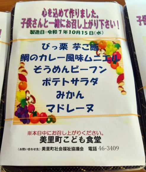 2025年10月15日(水)に美里町こども食堂さんが食堂を開催されたときの様子です。