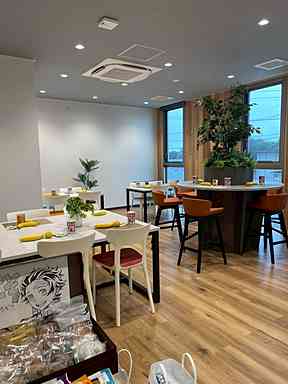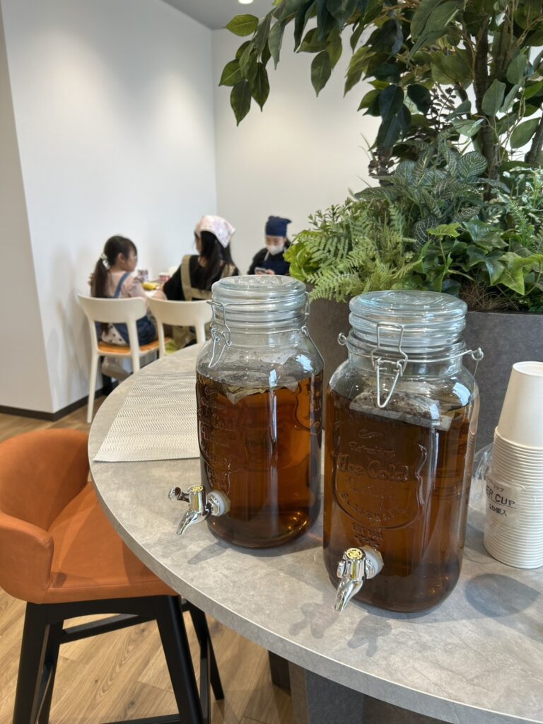 以前の銀行と言うと何か殺風景なイメージでしたが、この合志支店は、地域に開かれた店舗を目指す事もあり、こども食堂だけでなく、地域の住民の方たちにも利活用頂きたく、食堂も明るい雰囲気になっていました。